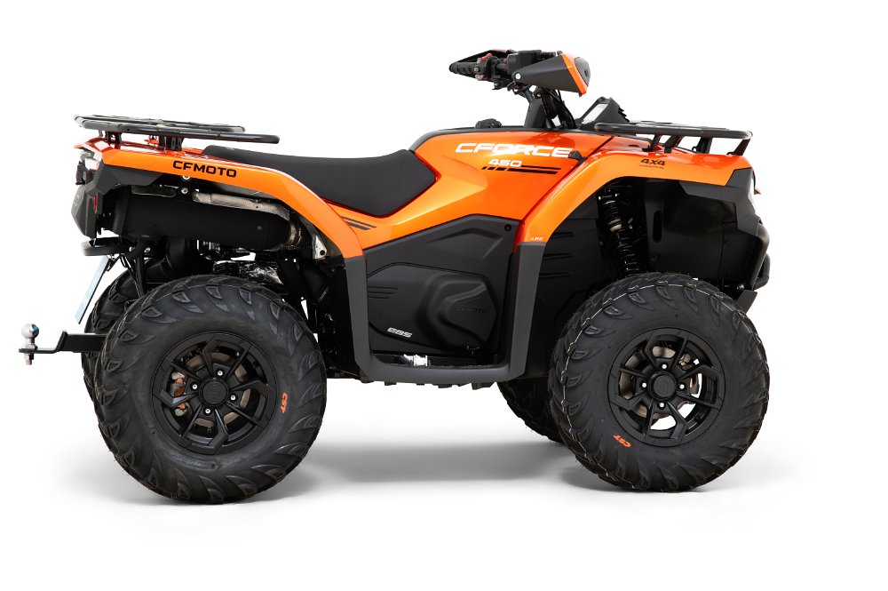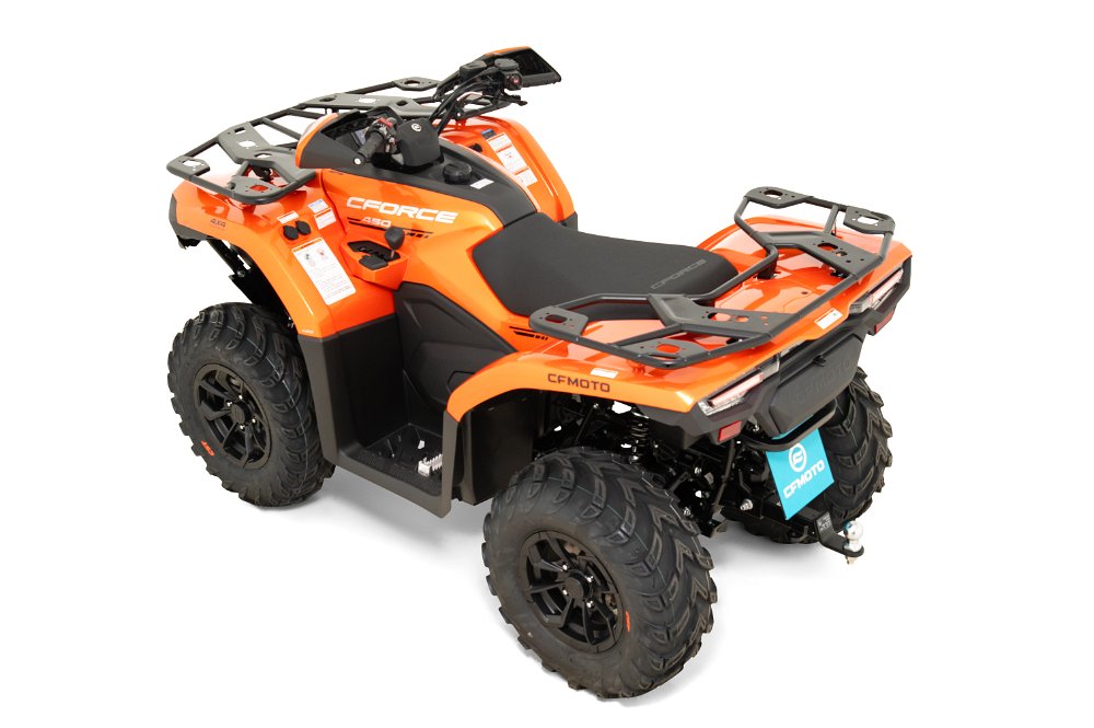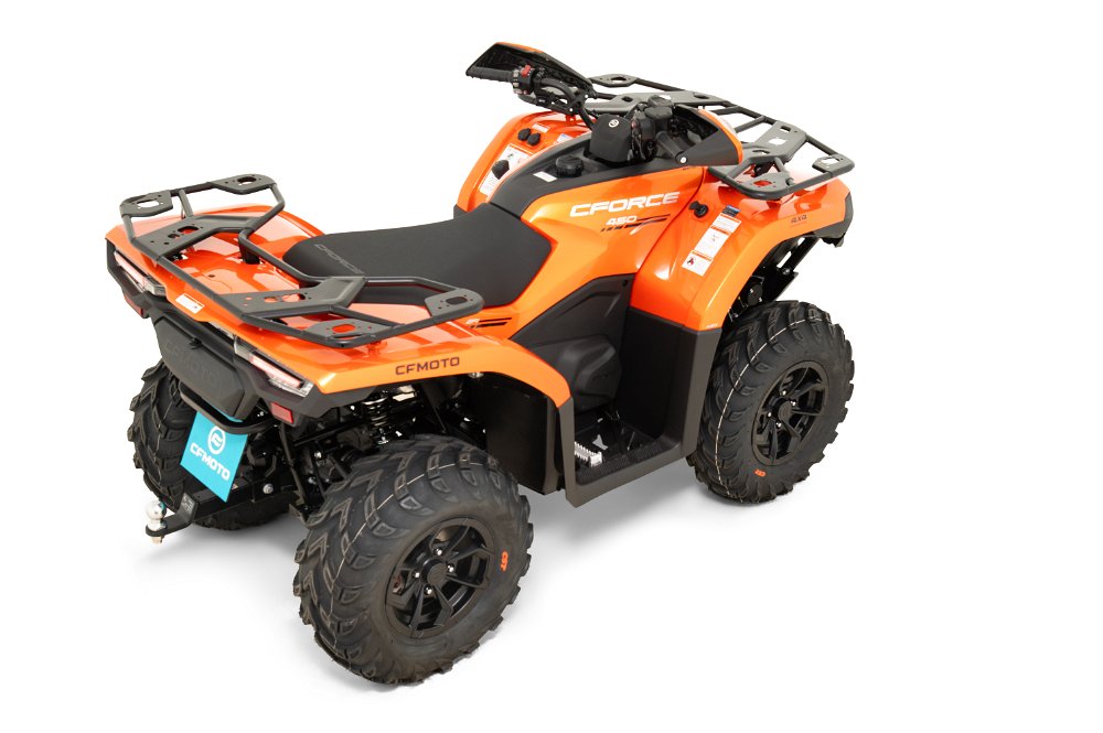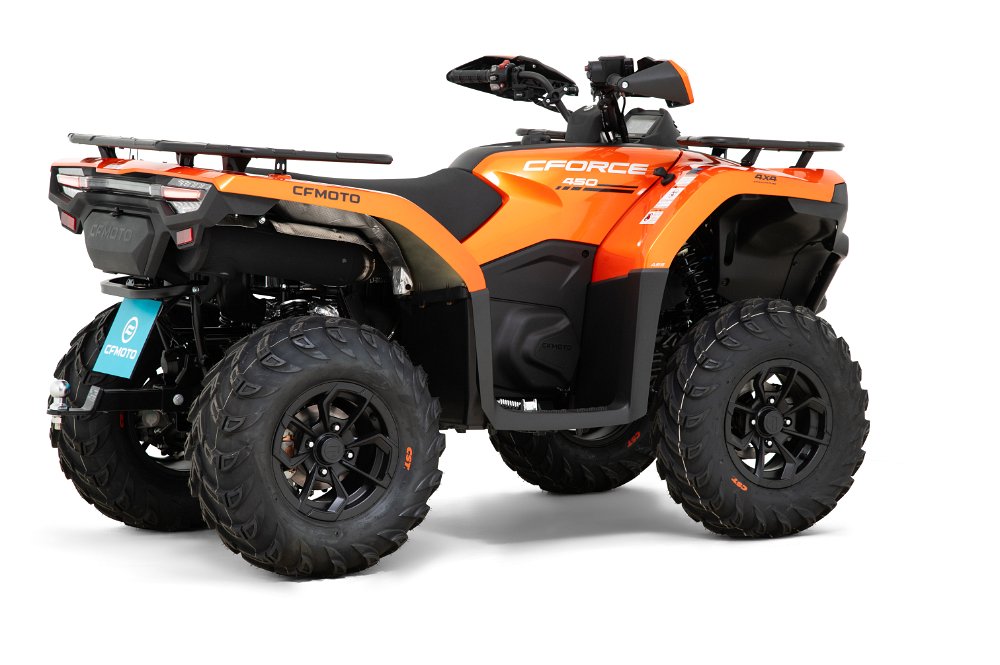 Der 400cm3-Motor mit elektronischer Benzineinspritzung überzeugt mit spritzigem Ansprechverhalten und beschleunigt die leichtgewichtige CFORCE 450 rasant. Ein manuell zuschaltbarer Allradantrieb, eine zuschaltbare Differentialsperre und ein stufenloses CVT-Getriebe mit Retour- und Unterstützungsgang sind wie bei allen CFMOTO-ATVs serienmäßig.