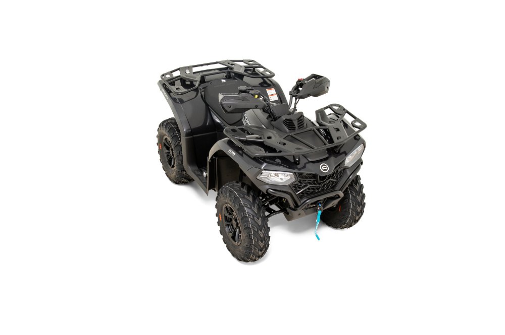 Der 400cm3-Motor mit elektronischer Benzineinspritzung überzeugt mit spritzigem Ansprechverhalten und beschleunigt die leichtgewichtige CFORCE 450 rasant. Ein manuell zuschaltbarer Allradantrieb, eine zuschaltbare Differentialsperre und ein stufenloses CVT-Getriebe mit Retour- und Unterstützungsgang sind wie bei allen CFMOTO-ATVs serienmäßig.