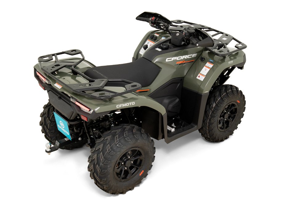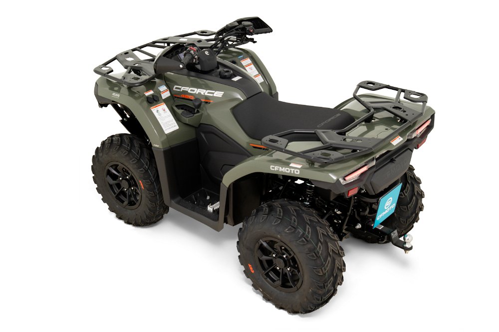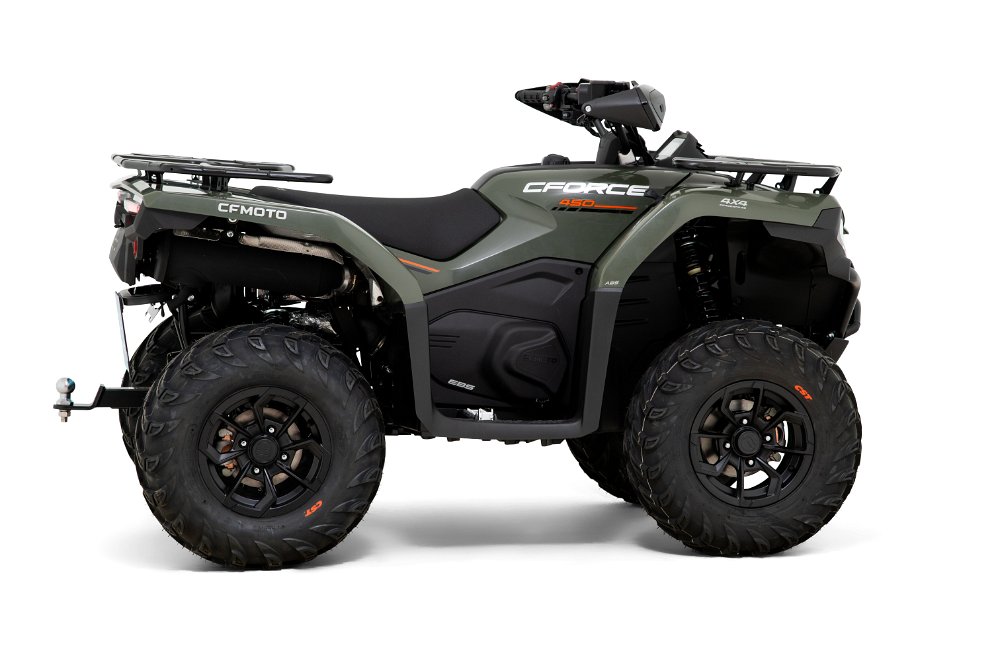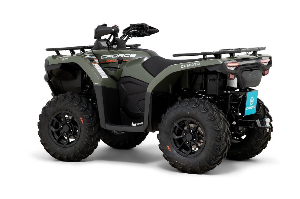 Der 400cm3-Motor mit elektronischer Benzineinspritzung überzeugt mit spritzigem Ansprechverhalten und beschleunigt die leichtgewichtige CFORCE 450 rasant. Ein manuell zuschaltbarer Allradantrieb, eine zuschaltbare Differentialsperre und ein stufenloses CVT-Getriebe mit Retour- und Unterstützungsgang sind wie bei allen CFMOTO-ATVs serienmäßig.