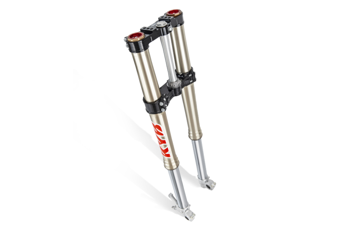 - Kayaba AOS-Gabel mit geschlossener Kartusche ø 48 mm: Dank der eloxierten Innenteile und der Behandlungen der Materialien wird die Gleitreibung auf ein Mindestmaß reduziert, während durch die bewährten Einstellungen von Druck- und Zugstufe immer die optimale Personalisierung der Einstellung gefunden werden kann.