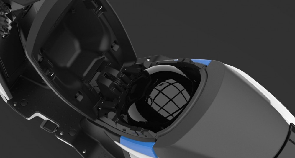 Großes, beleuchtetes Helmfach unter der Sitzbank für einen Integralhelm